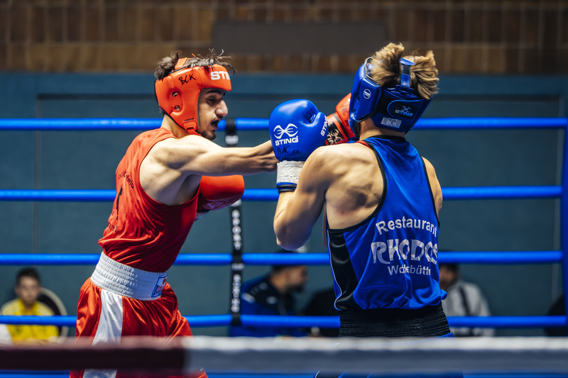 Mutig war der erfahrenere Mohammad Ghalandari bei den Männern. Er wog 71 Kg und nahm den, mit 77 kg deutlich schwereren, Peiner Hussein Omar als Gegner an. Der technisch stark boxende Wolfenbütteler war nach zwei Jahren Ringpause noch nicht wieder voll da, überzeugte jedoch alle drei Runden und wurde klarer Punktsieger.