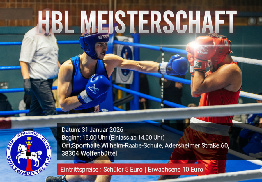 Am 08.02. und 09.02.2025 richtet der BAC Wolfenbüttel die HBL-Meisterschaft in Wolfenbüttel aus. Es werden spannende Kämpfe erwartet und wir freuen uns auf zahlreiche Zuschauer.